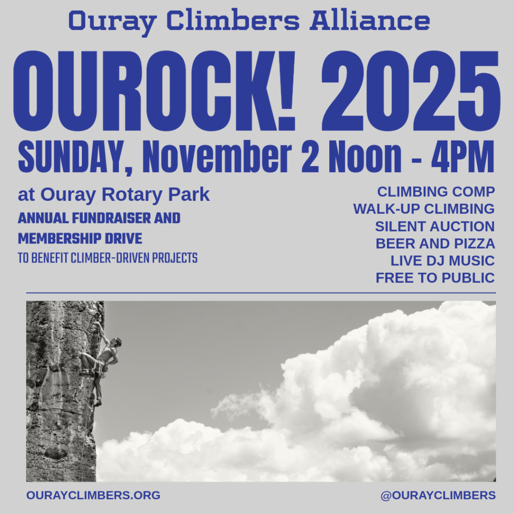 “The Ouray Climbers Alliance was founded to serve as a unified voice for climbers in Ouray County and surrounding areas through advocacy, stewardship, and education.”